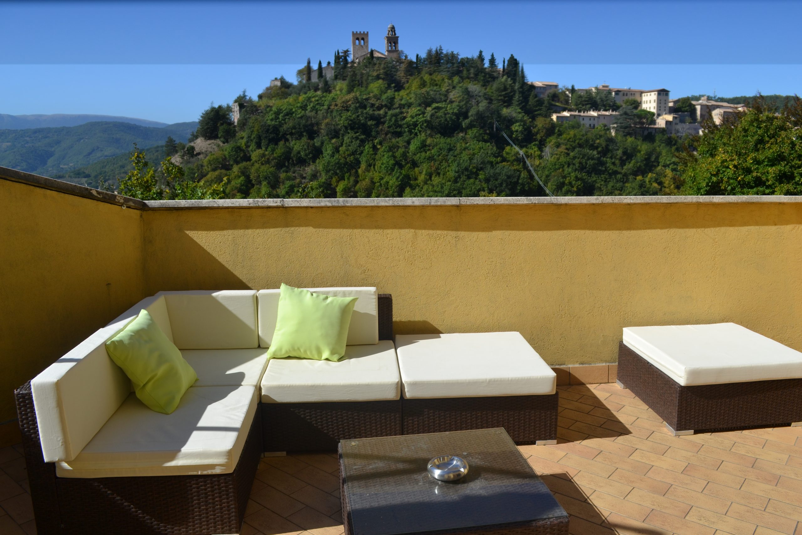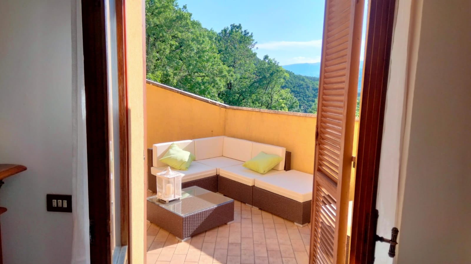 La terrazza di circa 40 mq. è attrezzata con tavolo e divano ed ha a disposizione la vasca idromassaggio solo nel periodo estivo.